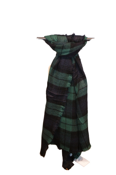 Bufanda con estampado de cuadros, color verde y azul.
